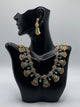 Introducing the Aurora Exotic Party/Wedding Necklace Set—a mesmerizing ensemble crafted from durable brass metal and enriched with a radiant rhodium coating. The rhodium finish not only enhances the longevity of the piece but also imparts a lustrous, silver-like brilliance that catches the eye.